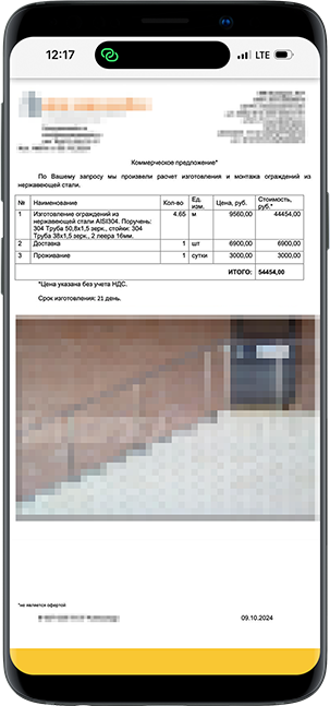Прямо в приложении можете сформировать коммерческое предложение на вашем фирменном бланке и сохранить на своем устройстве для отправки через почту или мессенджер.