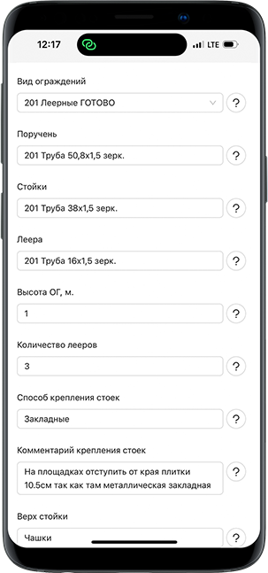 Бригадам, монтирующим лестницы и ограждения Считайте стоимость ограждений и отправляйте клиентам прямо с телефона